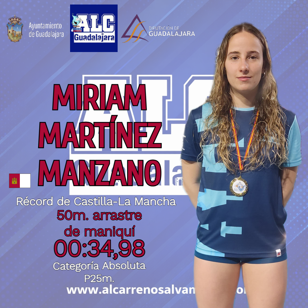 También se lograron dos récords de Castilla-La Mancha absolutos, ambos a cargo de Miriam Martínez Manzano, en 50 metros arrastre de maniquí con 00:34,98 y en 100 metros combinada de salvamento con 01:10,94.