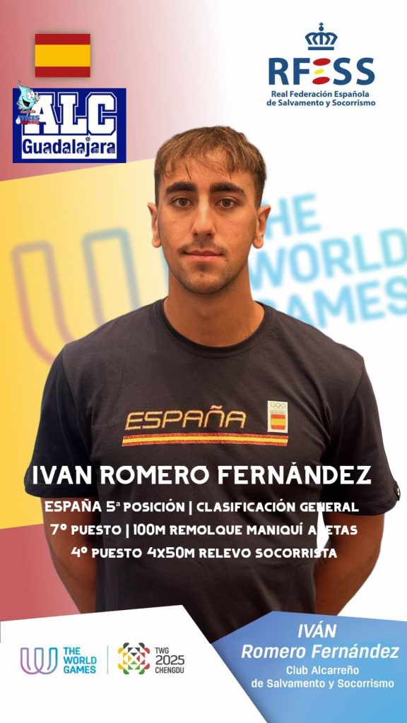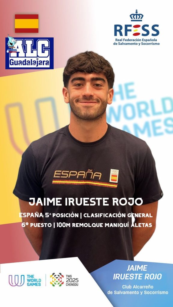 El Club Alcarreño de Salvamento celebra la brillante participación de sus socorristas Jaime Irueste Rojo e Iván Romero Fernández en los World Games 2025, la máxima cita internacional para deportes no olímpicos, disputada los días 8 y 9 de agosto en el Lake Campus Natatorium de Chengdú (China).